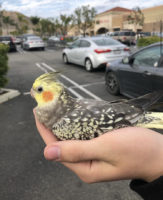 Baby bird not even a year old he flew away on Alessandro near Domino’s please if you find my bird call me 9514868780 I Love this guy so much I don’t know what I’ll do without him