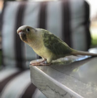 Mint Green Cheek Conure. Very sweet and friendly. Got out between 5:30-6:30pm on March 2, 20. Leg band on left foot with breeder initials MP. Owner will supply complete band info.