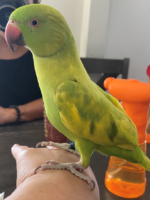 Lime green with some yellowish on wings and tail. Band “PH CA xxxx” owner will supply complete band information.