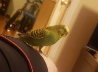 Green Female Budgie(Pink Cere) that listens to commands such as ‘Step Up’ and sometimes ‘Come Here’ from a short distance.(More often if bribed with Millet)