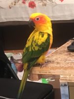 Chompers is a tame and friendly Sun Conure who escaped from 6 St. Anne Pl. North, Lethbridge, Alberta on June 15th, 2017. He is friendly and will likely approach people, especially if hungry. If you see him, please contact me at 403-915-5058 or janet.poplawski@gmail.com.