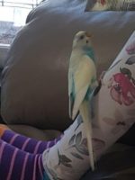 are birdies name is Gus he answers to Gussy. He likes to mimic the notification whistle on Samsung phones. She is skittish but I’m sure if you have a gentle voice and call him you might come to you maybe say treat.