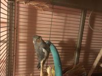 The bird is grey with the orange circles on her cheek. Since it’s lost it will surely whistle you start whistling. She is a young, active bird so you have to slowly approach her or she will start flying. She is a great flyer. My phone number is (236) 332-2420.