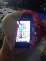She loves cellphones to watch the budgies on YouTube and play CandyCrush.