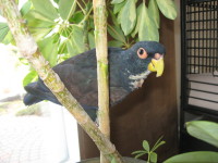 Indigo colour bronze wing pionus, banded, crooked toe, tame but will be frightened.