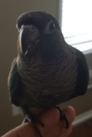 My baby greencheek conure Blues has been missing since Sunday. He was last seen in the Taunton rd & Westney area. He was spotted on Monday in the area but unfortunately, he flew away. On Tuesday, we attempted to use our other birds to get a response from him. We heard a call but was unable to locate him.Blues is hand tamed and will not bite.