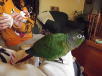 He was lost at 4 pm on July 8th and was last seen around Alexander Crescent. He is generally shy around strangers so it may be best not to approach him or you can call his name and outstretch your arm and he may fly to you. Thank you so much for reading this!