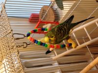 Soda is a green budgie with a yellow belly. He cannot fly very well and is not finger tame. He doesn’t bite.