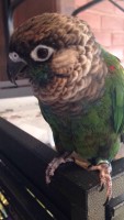 Piper will respond to whistling, or her name being said in a high-pitched tone. She should come to anyone as she is social. Her band is purple, underneath her wings is red, and the feathers around her butt are Aqua blue.