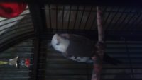 Otis is a white faced cockatiel. His body is grey with white markings.