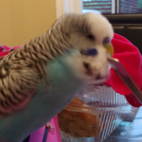 Felix is an Bright blue English budgie who talks in Russian. I don’t call him Felix because my family is Russian. In Russian, we pronounce it like” Fehla” like fairy in russian not “feela” He flew away on Friday on a trail (Trans Richmond Trail) He was trying to go back home but the door was closed, and he flew right in the trail. He loves toys that have a mirror or a bell with it, but also he adores seeds as he is a seed addict. He is really bad at flying but his wings haven’t been clipped recently because i was training him to fly onto my finger. He is tamed near humans and if you find him, he shouldnt be really afraid of you.