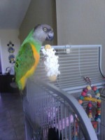 Raz is a Senegal Parrot. He is 4 years old. He is not banded. He can be a little aggressive at times. He loves to talk. Hes my whole heart. Please if found contact me, I am offering a reward.