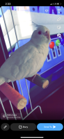 Estrella is a full white cockatiel she loves to be petted on her head , she has a band on her leg , will provide band information if found .