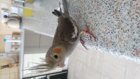 Orange ring on left leg he knows the Wolf whistle and was learning happy and you no it song