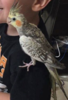 His name is tails. He says hello, pretty bird, whatcha doing. And sings all day long. He flew away on Wednesday Jan 18 th. he was a part of my family. I miss him very much. Would love to have him back.