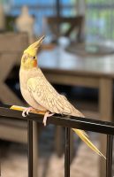 His name is Poncho. He responds to his name but he’s very shy. Please don’t approach him, he will get startled. He loves to chirp and will be very vocal when he’s happy.