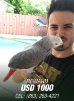 Cuca is 4 years old, she calls my mom Abuela, call my dogs Mikey and Royce she loves peanut she got lost because my father left the cage door open without the lock and she got away we live by Lejune Rd in Hialeah if you found her please contact me im giving $1000 reward.