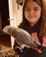 He is a family pet and loves are 6 kids. He vocalizes in Spanish mostly and some English. He loves Blueberries.