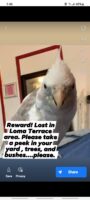 Beautiful gentle white cockatiel, tame……REWARD being offered.