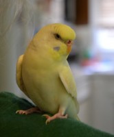 PLEASE help us by keeping an eye out for a little, pale yellow bird. She has turquoise markings on her back, under her flight feathers. Her name is Pudding. She is very sweet, but does not like human fingers going towards her unless she’s on the ground and needs help. She will possibly come onto an arm or shoulder.