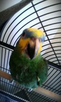 He doesn’t fly very well, he has trouble stopping. He says “Michael” a lot. He’s nervous around people