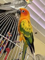 Gooby is an absolute sweetheart and will fly to random shoulders. I would be willing to offer a reward of 100 dollars to be reunited with my bird. Any info on any orange colored birds in the area would be appreciated.
