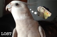 Tame, doesn’t bite, perches on hand, responds to “C’mon Birdman!”