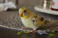 Her name is Daisy; she’s yellow, and her cere is currently tan/brown. She flew away in the Morningside area in Port St. Lucie, Florida.