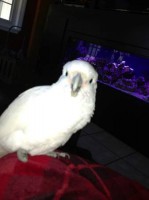 We have lost our pet bird, he is a small white cockatoo, goes by the name sunshine and very friendly. We have raised him since he was a baby and is two years old. He has some very light yellow and light orange under his wings and neck area. He is a Goffin Cockatoo, same family as the Umbrella Cockatoo but a lot smaller and a small crown on his head that raises when excited. Please call us if found. He has been our family pet for two years.