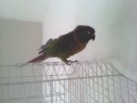 Sassy is a normal colored Green Cheek Conure that went missing a few weeks ago when she disappeared from the bird room. We had the door to the room open for a little while and went in and out of the house and we think she may have possibly flown out when we weren’t looking. We think she’s a female but we are not positive on her gender.