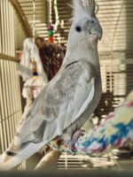 Coco, is a beautiful much bigger, white cockatiel with a patchy front and big hair do. They are both hand raised, extremely friendly and will likely seek any human.