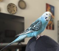 My blue parakeet Mavis is missing near Lakechase Community, Westchase, Tampa. She is friendly but scared of hands and will fly away if you try to touch her. She responds best to kiss sounds and human voices, and may perch on a shoulder if she feels safe.