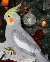 Kiwi is about 16 years old and says phrases “Hello Tiko” and “Pretty Bird”. Typical Grey cockatiel with orange cheeks and a yellow crown.
