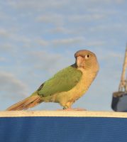 Kraken is two years old. She is sweet and friendly and has a green leg band on her foot. She flew away in the Golden Isles Lake area in Hallandale Beach.
