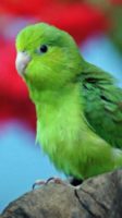 Dottie is a gregarious juvenile parrotlet. She is the perfect example of a fully green bird with the tiniest bit of blue behind the eyes. Dottie has a purple leg band*. She is approximately the size of a budgie.