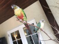 Her name is Ollie. She is a Yellow sided green cheek conure