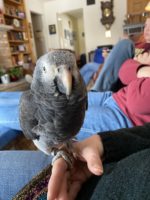 Rocky is a sweet 1-1/2 year old African Grey Temneh. He can say several words his favorite being Sweetie Bird (emphasizing on the sweetie), Step-up Rocky, Birdie-Bird, Rocky (in many different tones), What’s up Bird.