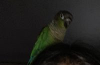 Blue has a red chest and red tail feathers. She has a leg band. She just got her flight feathers back so she doesn’t know how to fly. She is a bonded bird and her sister sweet pea misses her very much. She is very skittish and won’t fly to anyone.