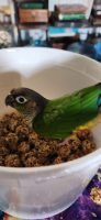 He is a year old. Very friendly says multi phrases. His favorite words are his name haha and what’s up buddy. Again he is super duper duper friendly.