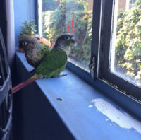 Petunia is a & year old conure who has a very sad mate waiting for her at home. She is a bit wild so she will bite but she really does mean well. Please if you find her she has a sad family waiting for her at home