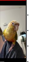 He’s green yellow and some red he’s small his name is Twinkie he says his name he’s the smartest sweetest boy ever . He flew away this morning while he was in my shoulder I’ve looked everywhere I’m exhausted I just want my baby home .