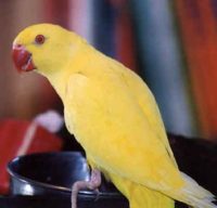 Gretchen is a 6 year old Lutino Indian Ringneck Parakeet. She is solid yellow in colour with a reddish beak. She is fairly tame but does bite occasionally.
