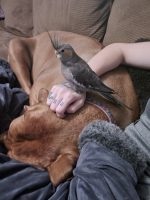 She is 4 months old and tame when it comes to people in my house, she will be scared though. She escaped about 5pm and she doesn’t have a ton of flying experience because she’s so young. She comes to food, especially in a bowl with a spoon because she was hand fed at the pet store. She knows her name and “big wings”. Please contact me if found!