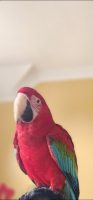 Our Bird’s names is Ariel.She is a female. She is mostly bright red and blue(green winged Macaw). She flew from our house around 1:30pm.(12/31/22) She is 1 year and 8 months old. Someone called around 3:30 mentioning seeing her near Valley Ranch Pkwy S.She knows how play peek a boo. Her wings arent clipped. She has a little bit of social anxiety. But she is very friendly. She loves to play with balloons. She also loves eating seeds like sunflower and peanuts and her favorite is pine nuts.