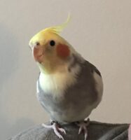 **$500 REWARD** 2 1/2 yr old male – Mixture of lighter grey & darker grey with white on his body. Has a yellow head with orange cheeks. Has a band around right leg. Impartial to women…may come to you if you whistle the Andy Griffith theme or When The Saints Come Marching In.