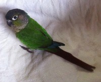 1 Yr Old Green Cheek Conure, has his blue flight wings escaped yesterday when one of the children opened a window and left it open. My family is devastated and would appreciate any assistance. Charming has grey on his cheeks and a maroon / red colored tail. He loves attention and is very socialable. May be scared has he has never really got out before and used his flight wings.