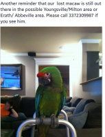 LOST  LA Lafayette, Military Macaw ‘Maverick’ May 1-15