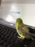 Bright green with some chewed feathers on her back.smaller than a parrot, larger than a parakeet. Sick and needs medication . Lost in Fairgrounds area of New Orleans. Will land on a shoulder if hungry. 301-910-6735. 10 years old. Please help!