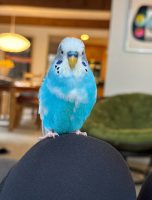 Jerry is talkative and affectionate budgie who escaped our house on July 18. He immediately flew high into the tall tree canopy (very tall fir trees). He moved from there, and miraculously found him later in on a neighboring street – also with very tall trees. We called to each other but he flew way above our heads as if he was disoriented and not able to figure out that he needed to come close to the ground. It was nearing dusk and we heard him high up in a tree but then he went silent. We returned at dawn the next day hoping he was still there, but no such luck. Location of last contact was 46th Ave NE and 192nd St, in Lake Forest Park, just south of Horizon View Park and the LFP Water Reservoir. We have been roaming the area, calling out to him and hoping to hear his reply. He responds to his name, and a whistling version of Peter and the Wolf. Please call or text 703-635-5805 with any information. Thank you! We will offer a $500 reward for his safe return.