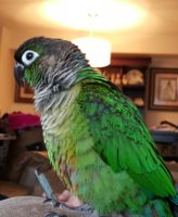 Sweet male conure. Mostly green and grey with red tail feathers and some red feathers on his belly. He must’ve gotten out when out property manager entered our apartment yesterday. He is fully flighted. Lost in vicinity of Kentucky and Vance st near Belmar Park in Lakewood. 303-435-5505